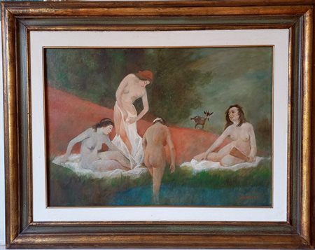 ALFREDO SORESSI (1897-1982) - BAGNANTI OLIO SU COMPENSATO CM.50X70 FIRMATO IN BASSO A DESTRA
