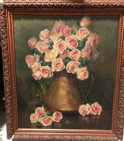 EUGENIO FARELLO (1894-1955) - ROSE OLIO SU TELA CM.80X70 FIRMATO IN BASSO A DESTRA