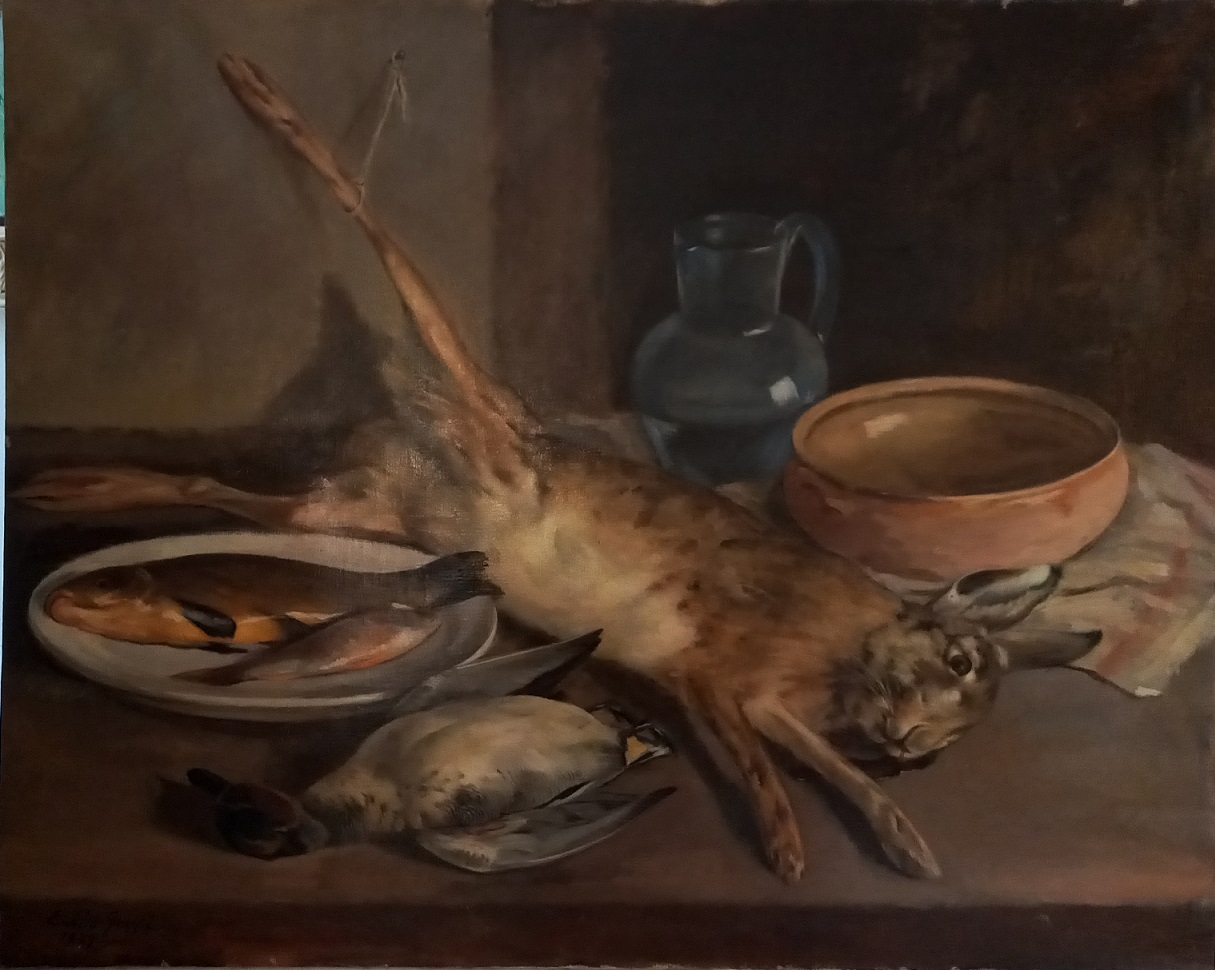 ENRICO GROPPI (1911-1972) - NATURA MORTA 1939 OLIO SU TELA CM.72,5X90 FIRMATO E DATATO IN BASSO A SINISTRA SENZA CORNICE