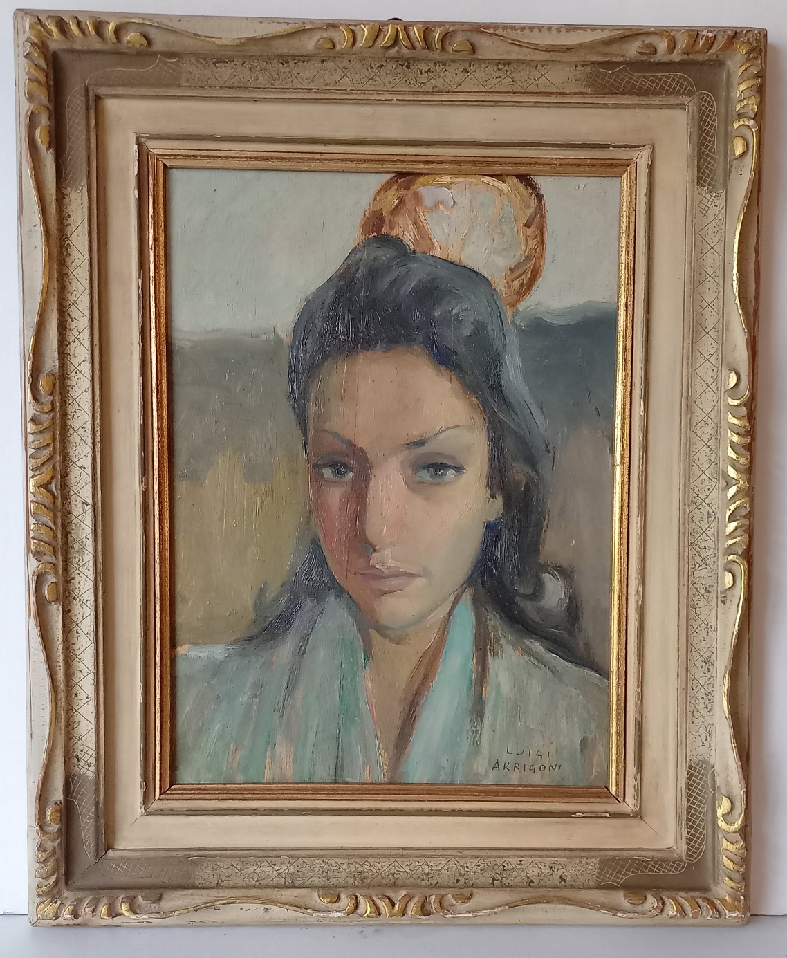 LUIGI ARRIGONI (1896-1964) - RITRATTO OLIO SU COMPENSATO CM.40X28,5 FIRMATO IN BASSO A DESTRA