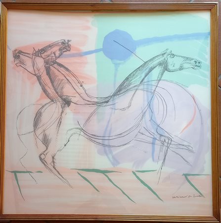 BRUNO CASSINARI (1912-1992) - CAVALLI SERIGRAFIA SU TELA CM.90X90 FIRMATA IN BASSO A DESTRA "CASSINARI PER ZANETTE"