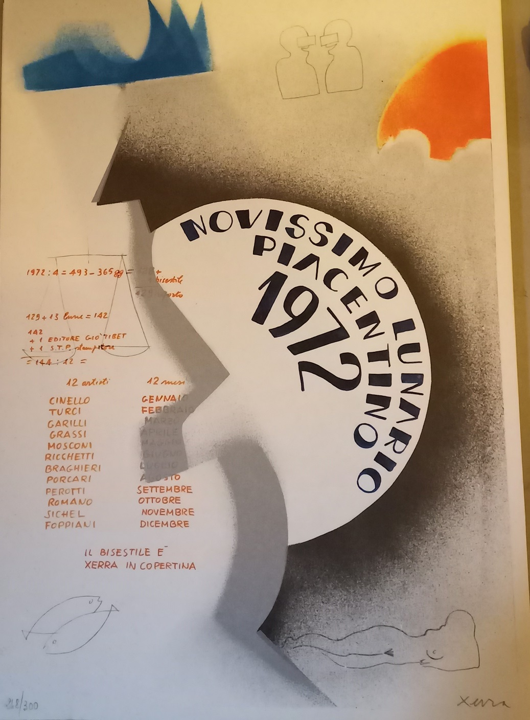 AA.VV. NOVISSIMO LUNARIO PIACENTINO 1972 - CARTELLA DI 13 LITOGRAFIE CM.48X34 ES.248/300 FIRMATE A MATITA