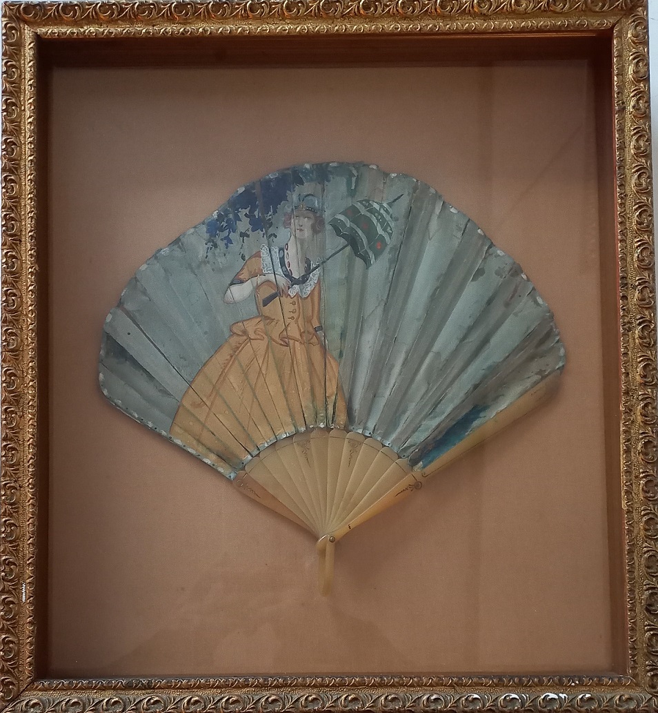 ANTICO VENTAGLIO DIPINTO A MANO IN CORNICE CM.40X36