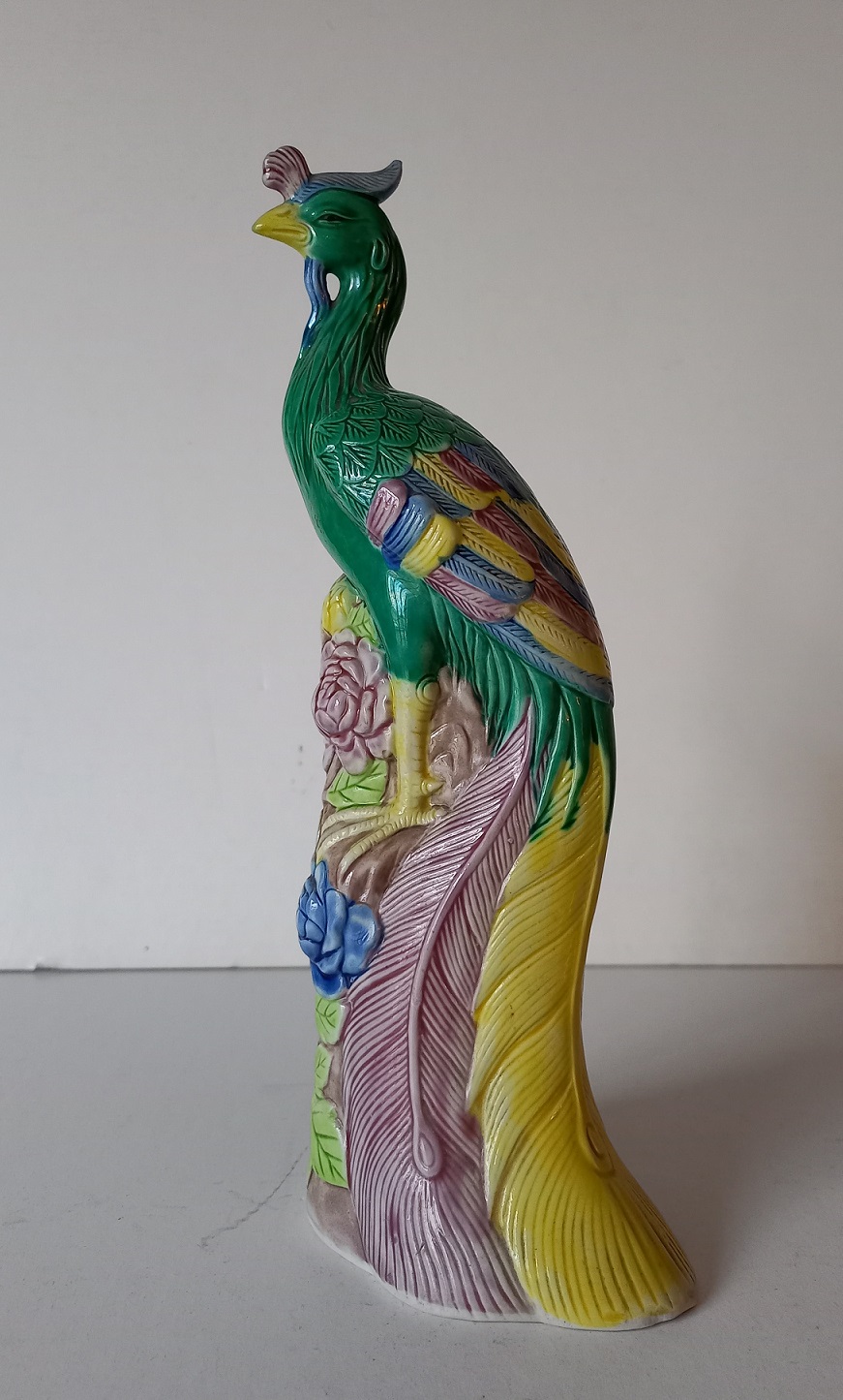 PAVONE IN PORCELLANA POLICROMA H.CM.25 MARCHIO INCISO SOTTO LA BASE