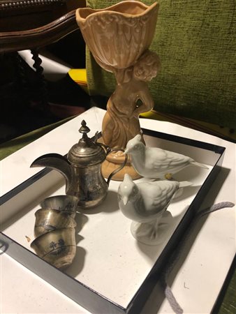 SCATOLA FANTASIA CON PORCELLANE HEREND E OGGETTI VARI