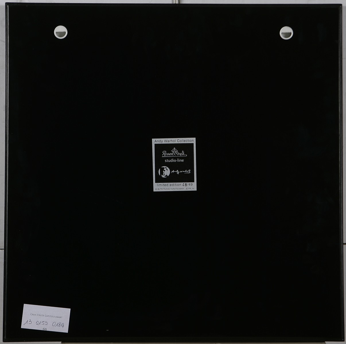WARHOL ANDY (1928 - 1987) Elvis. Litografia su platino. Cm 50,00 x 50,00. Limited edition 48/49 . Firma in basso a destra.In allegato all'opera certificato Rosenthal Wand-Objekt, Elvis-platin. Opera contenuta in una custodia in legno 59x59x10cm.