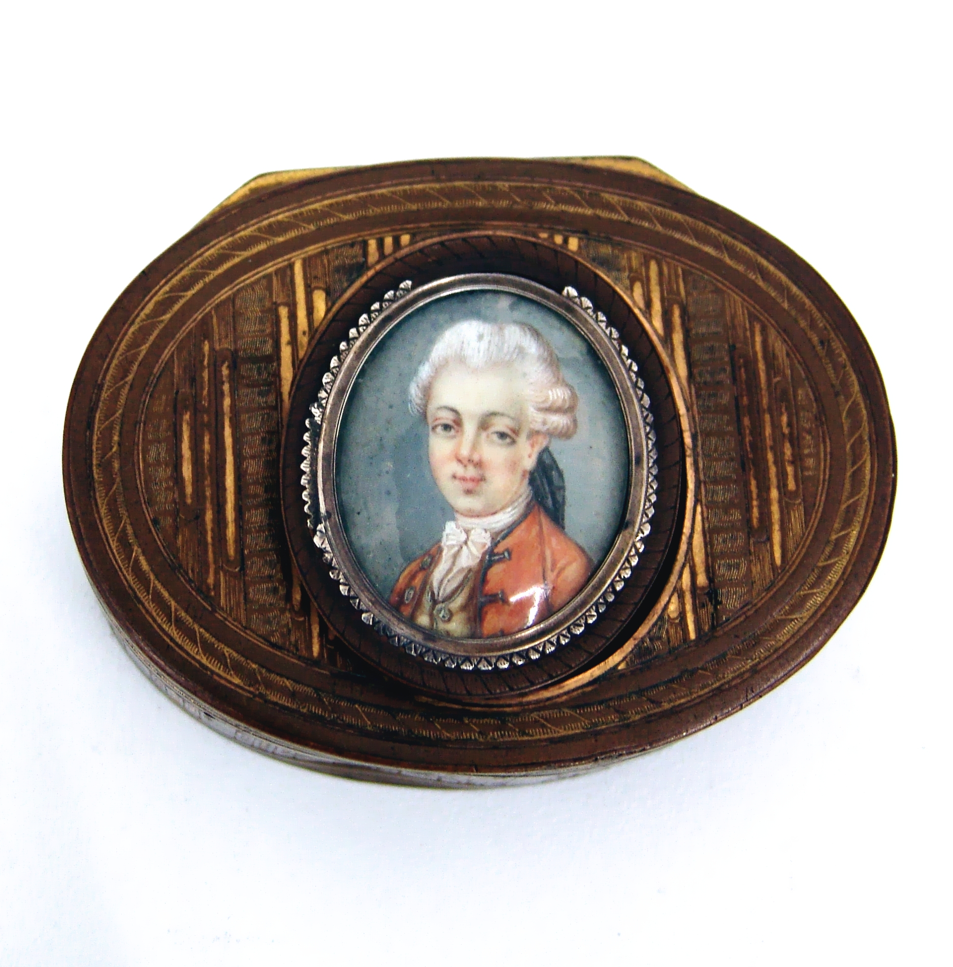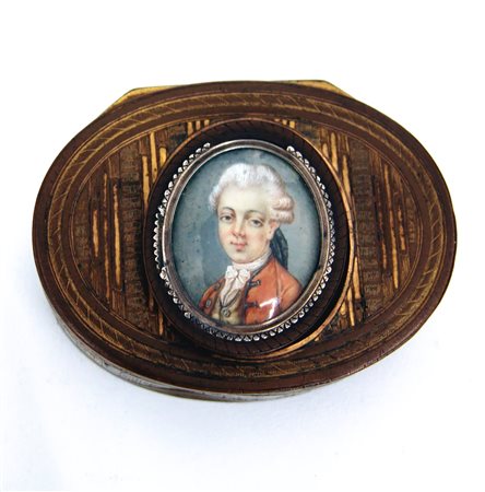 tabacchiera in ottone con miniatura, 6x8x3 cm