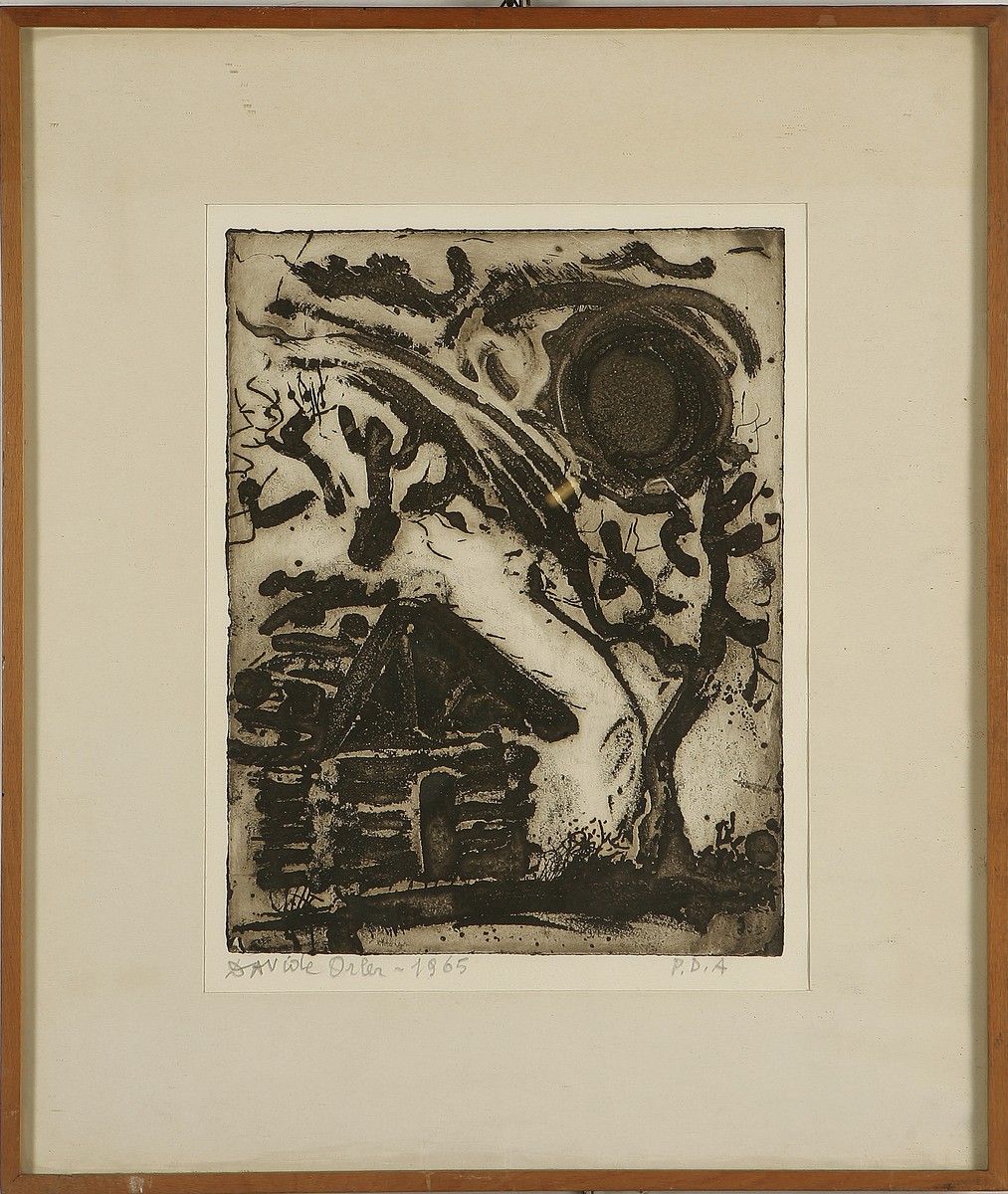 ORLER DAVIDE (1931 - 2010) Casa. 1964. Litografia. . Cm 27,00 x 34,00. Prova d'autore. Cornice presente