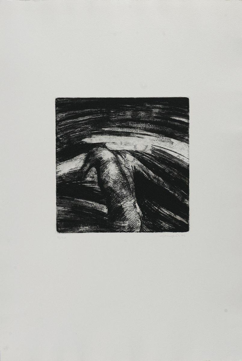 BONFANTI MAURIZIO (n. 1952) La fine. 1993. Cera molle. Cm 53,00 x 79,00. Misure lastra: 29x29 cm. Firma, data e tir. 5/10 in basso a matita. Opera pubblicata sul catalogo Bonfanti Maurizio: incisioni 1993-1995.