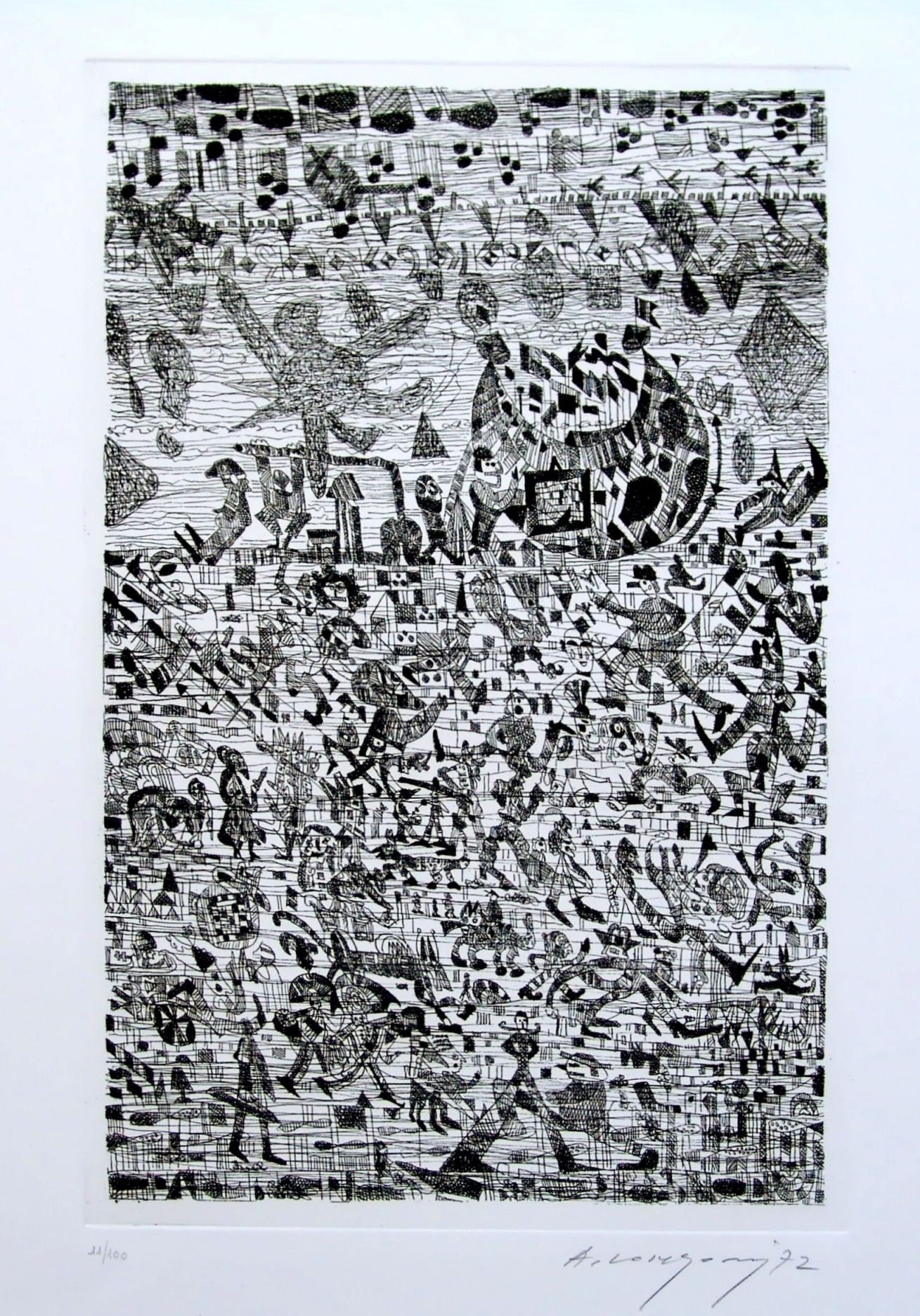 es. 11/100, firma dell’artista a destra e timbro de Il Segnapassi di Pesaro in basso a sinistra