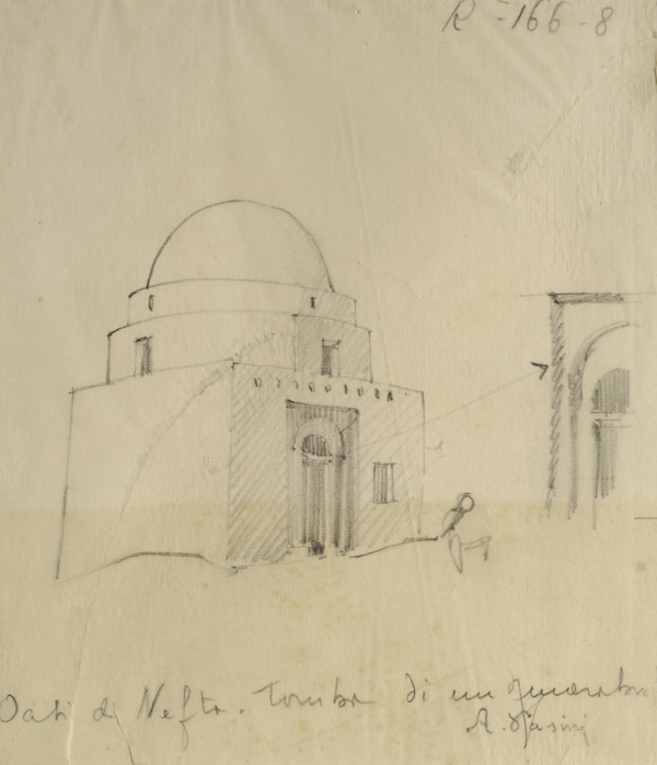 Alberto Pasini (Busseto, 1826 - Cavoretto, 1899) TOMBA Matita su carta, cm. 18x16 Firma in basso a destra.