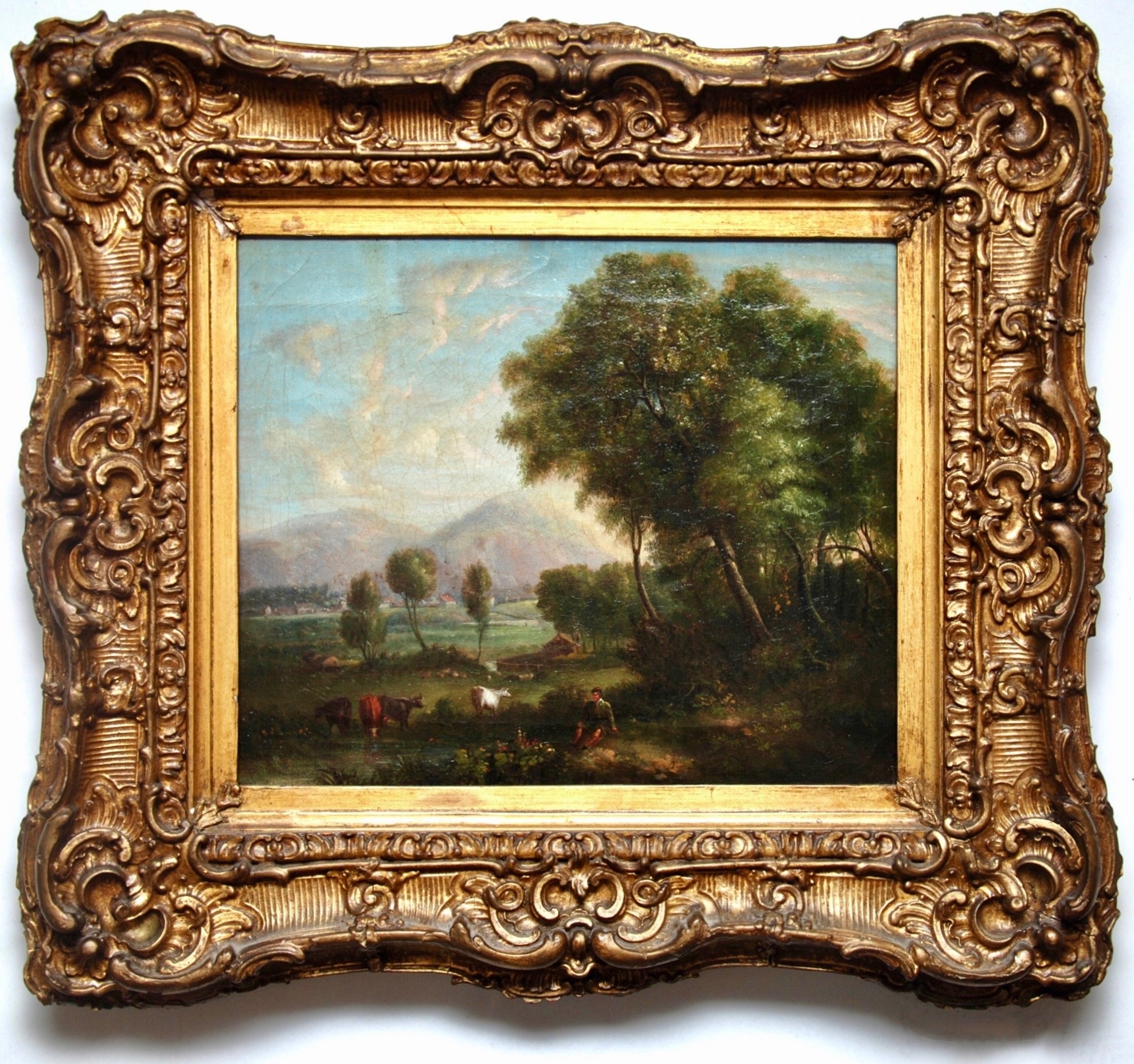 Patrick Nasmyth (1787 - 1831) (attribuito), olio su tela raff.paesaggio scozzese con pastore e armenti