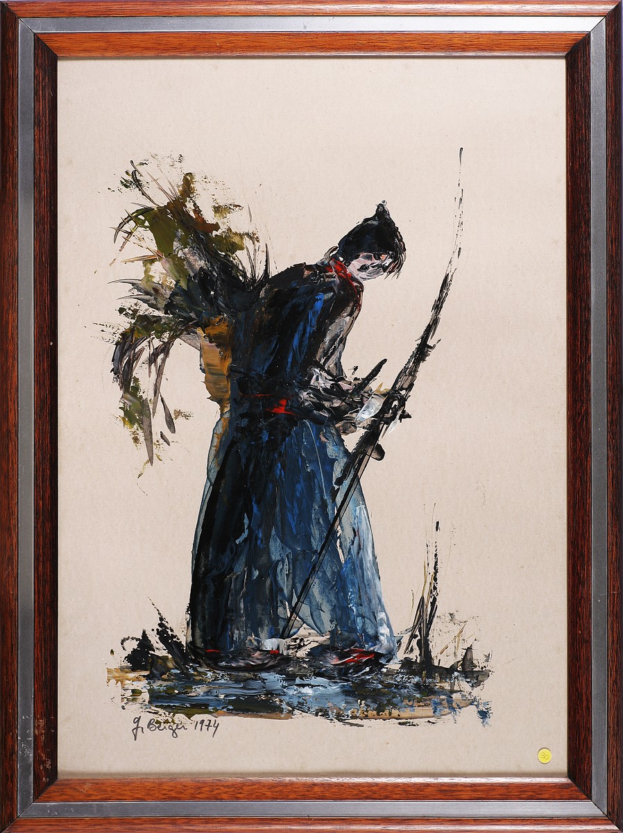 Lotto 370 | ANONIMO Contadina. 1974. Tecnica mista su carta. Cm 50,00 x 70,00. Firma e...