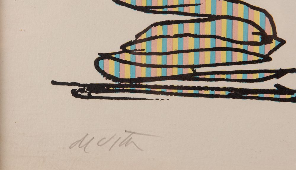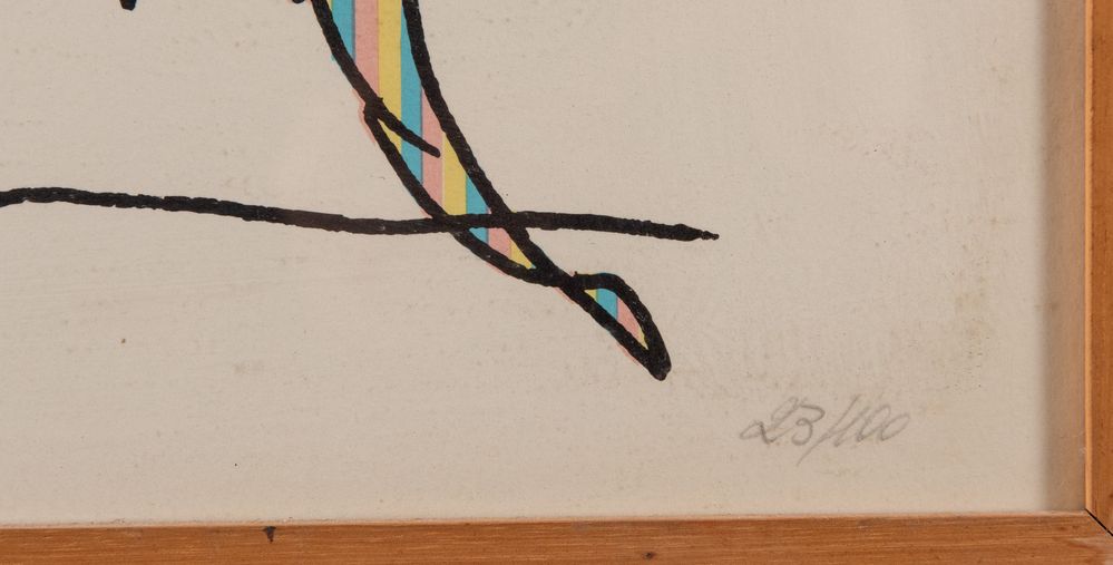 LUCIANO DE VITA (Ancona 1929 - Bologna 1992) "Senza titolo". Litografia a colori su carta. Cm 90x69. Opera firmata in basso a sinistra De Vita. Reca numeri di tiratura in basso a destra 23/200.