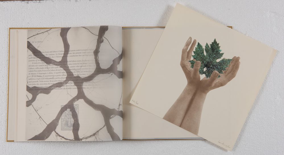 MIRELLA BENTIVOGLIO (Klagenfurt am Wörthersee 1922 - Roma 2017) "Un albero di pagine", 1992. Libro d’artista con una litografia e collage. Cm 30x30. Litografia firmata in basso a destra Bentivoglio. Reca numeri di tiratura in basso a sinistra 34/70.
