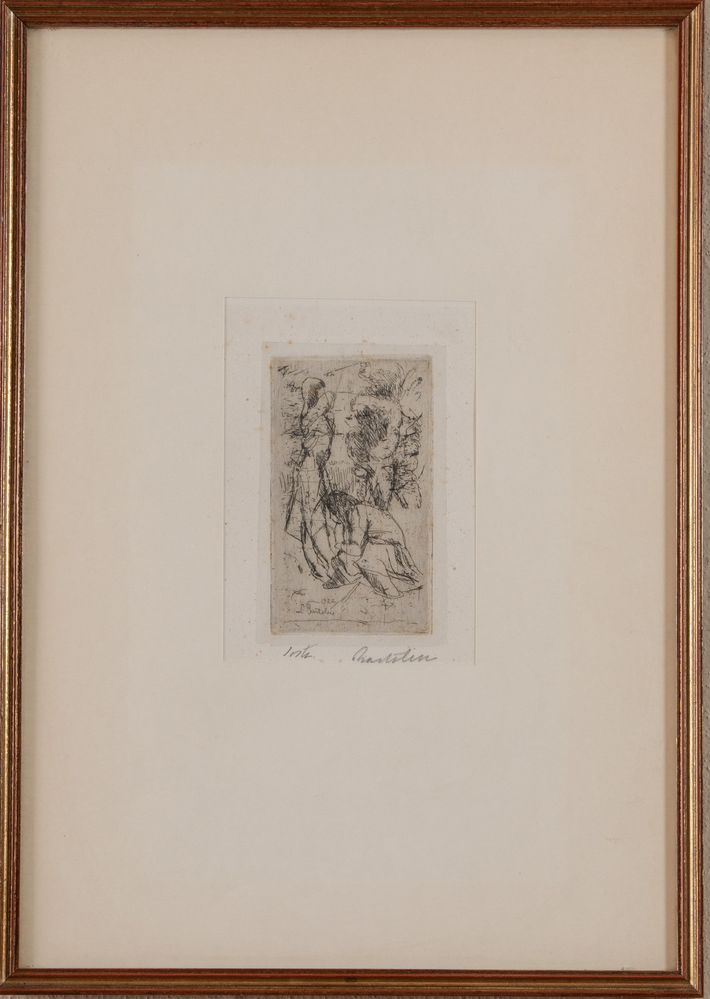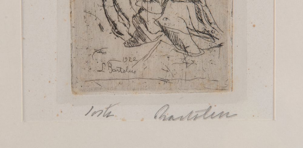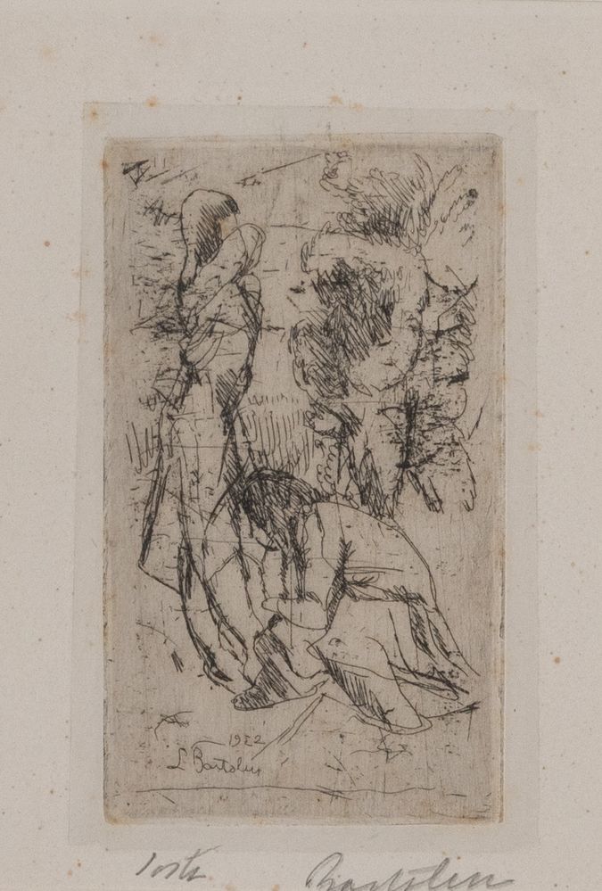 LUIGI BARTOLINI (Cupramontana 1892 – Roma 1963) "Sosta", 1932. Acquaforte. Mm 137x82. Opera firmata e datata in lastra in basso a sinistra 1932 L. Bartolini. Opera intitolata e firmata in basso Sosta Bartolini.