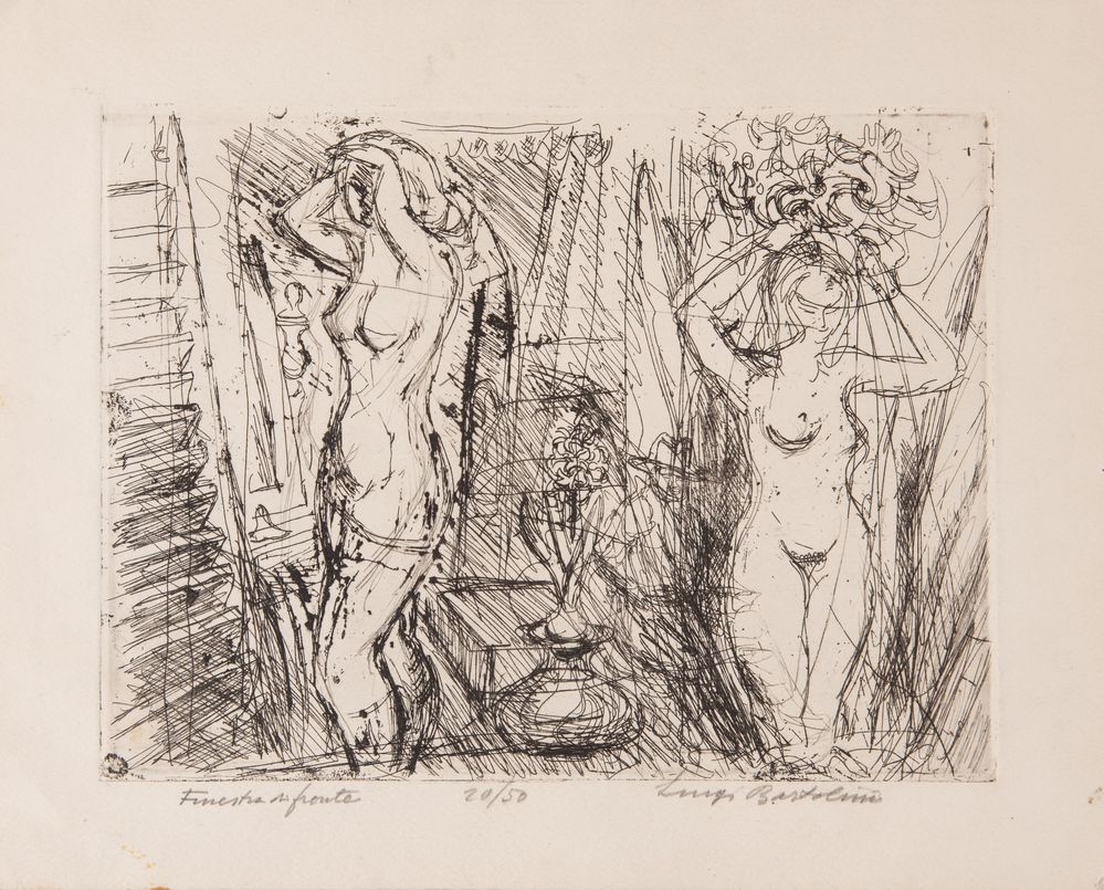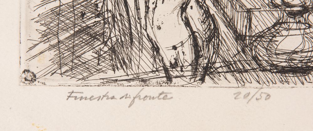 LUIGI BARTOLINI (Cupramontana 1892 - Roma 1963) "Finestra di fronte". Acquaforte su carta. Lastra: mm 247x324. Opera firmata in basso a destra Luigi Bartolini. Opera intitolata in basso a sinistra Finestra di fronte. Reca numeri di tiratura in basso al centro 20/50.