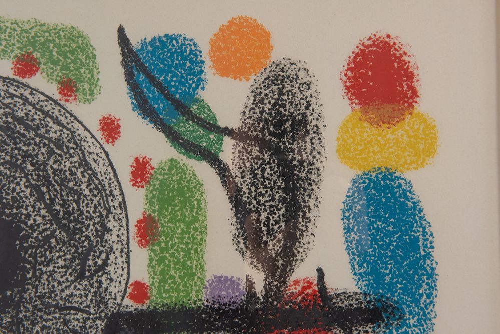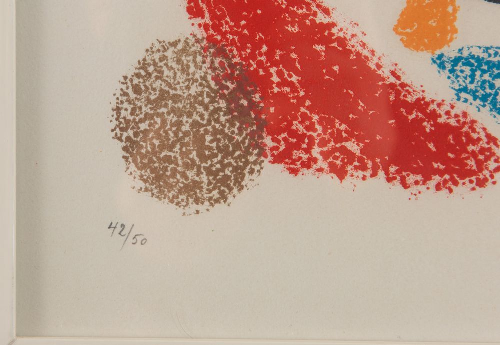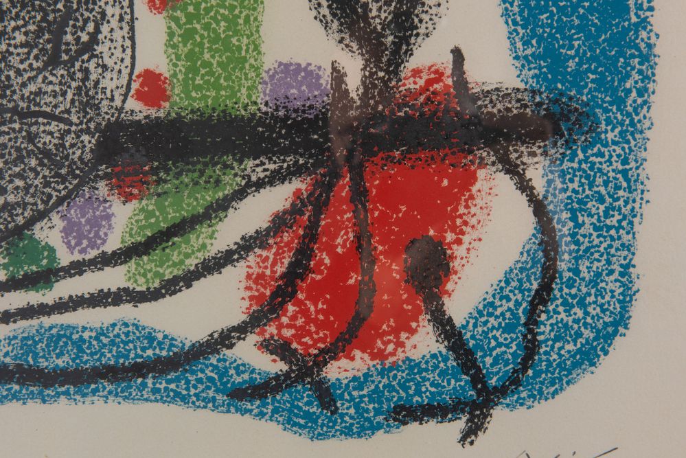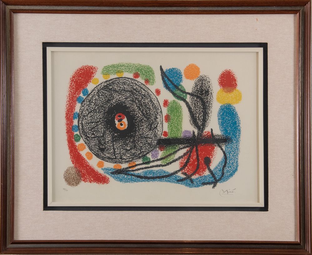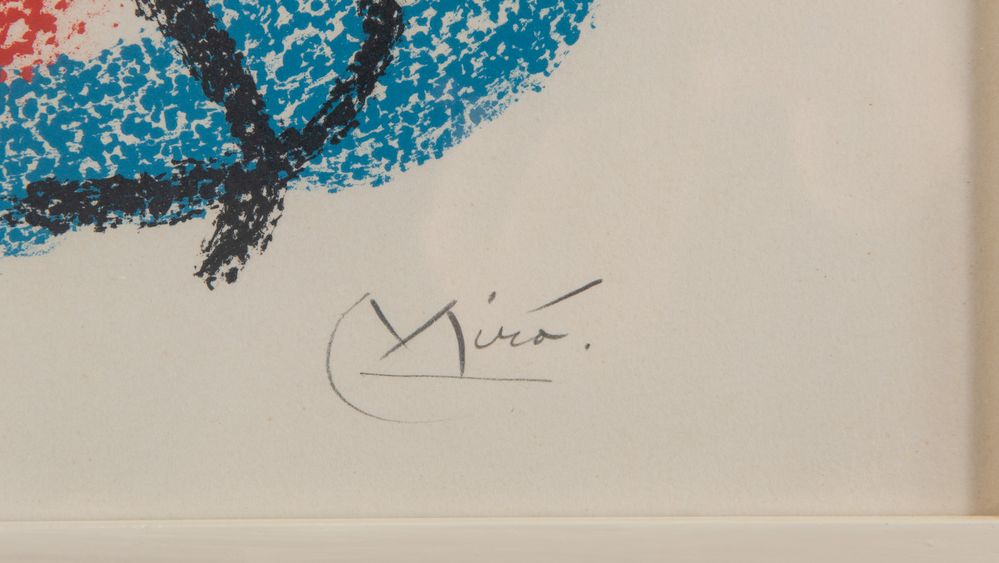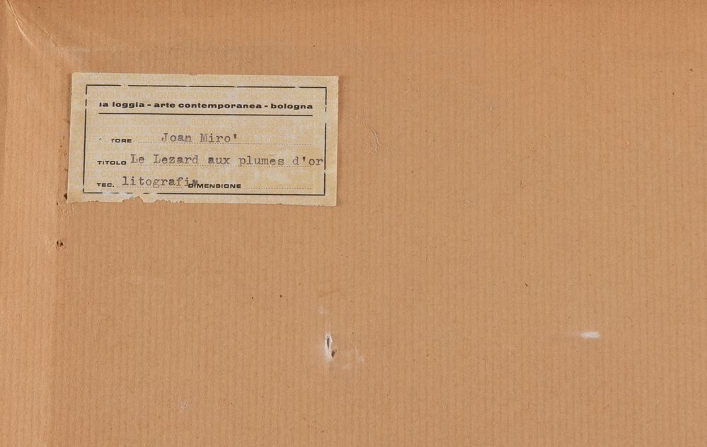 JOAN MIRÒ (Barcellona 1893 - Palma di Maiorca 1983) 1971 "Le Lezard aux plumes d'or", 1971. Litografia a colori su carta. Cm 41x56. Opera firmata in basso a destra Mirò. Reca numeri di tiratura in basso a sinistra 42/50. Al retro reca etichetta Galleria d'Arte La Loggia, Bologna. Pubblicazione: Mirò lithographe IV 1969-1972, Maeght Editeur, tav. 812.