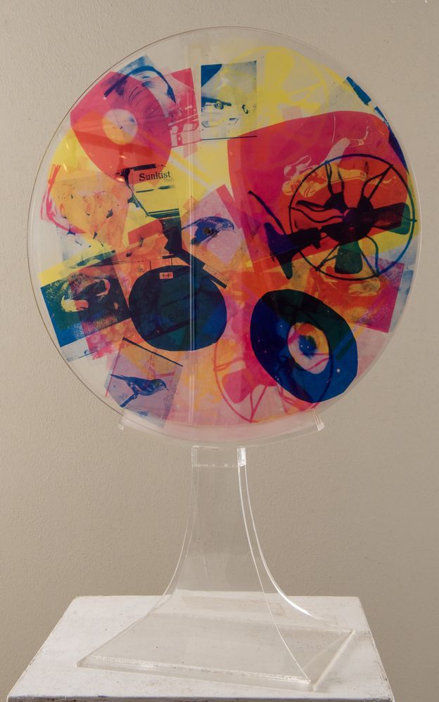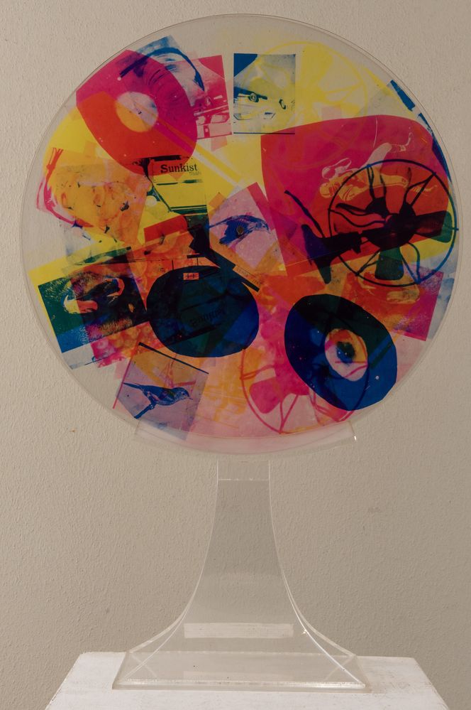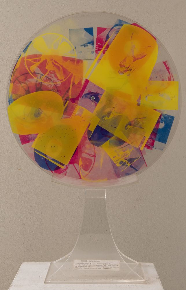 ROBERT RAUSCHEMBERG (Port Arthur 1925 - Captiva Island 2008) "Passport", dal portfolio Ten from Leo Castelli, 1967. Scultura multiplo composta da tre serigrafie su dischi rotanti di plexiglass. Diametro: cm 50,9. Opera firmata e datata Rauschemberg 67. Reca numeri di tiratura 100/200. Pubblicato da Tanglewood Press, New York. Scultura multiplo catalogata dal MoMa con numero 2415.1967.6 e dalla National Gallery of Art con numero 2006.126.6. Bibliografia: E. Foster, A. Robert Rauschenberg: Prints 1948/1970. Minnesota: Minneapolis Institute of Arts, 1970, n. 39.