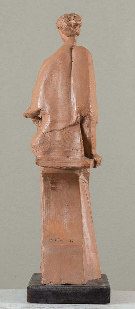 CLAUDIO NICOLI (San Giovanni in Persiceto 1958) "Senza titolo". Scultura in terracotta. Senza basamento: cm 47,5x10,5x18. Opera firmata al retro Nicoli.