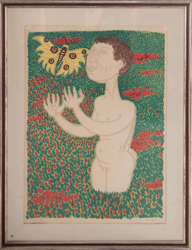 GIUSEPPE MIGNECO "Senza titolo", 1968. Litografia a colori su carta. Cm 70x50. Opera firmata e datata in basso a destra Migneco 68. reca numeri di tiratura in basso a sinistra 10/99.