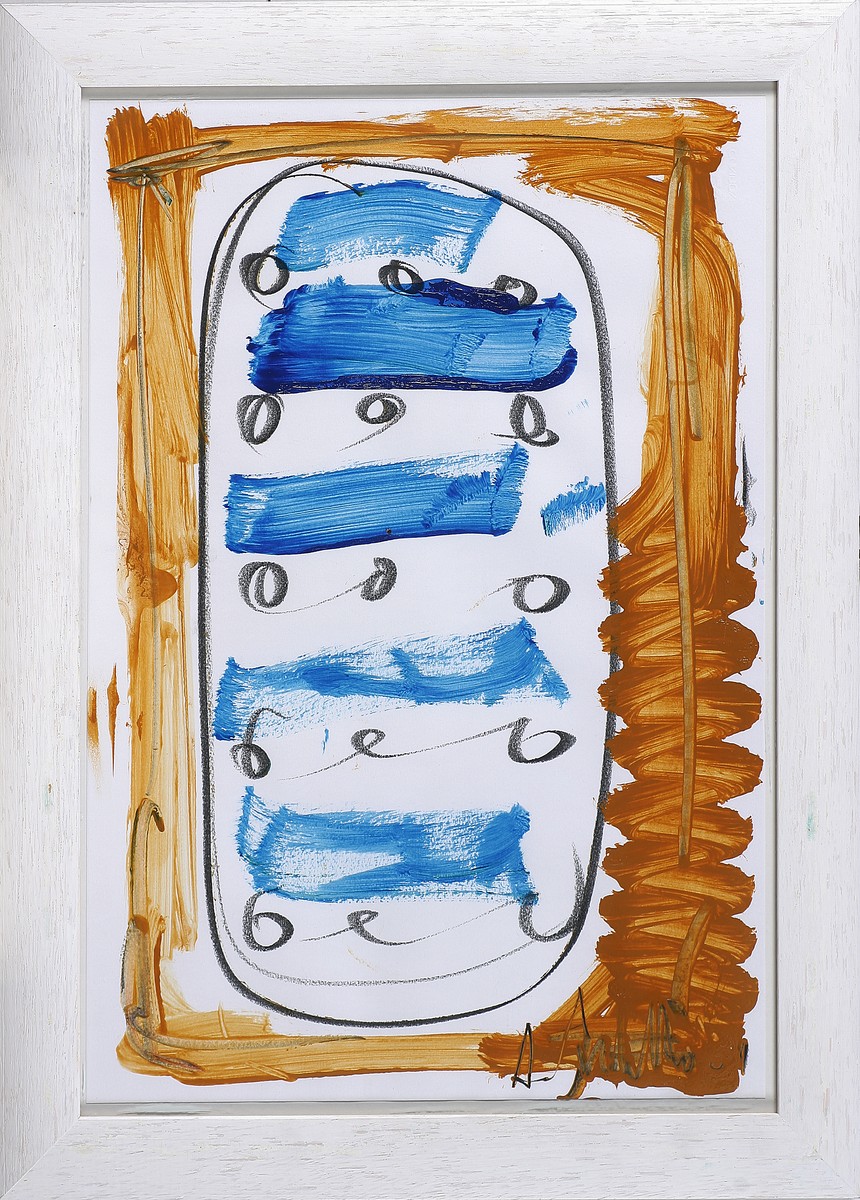 IEVOLELLA ANTONIO (n. 1952) Senza titolo. Tecnica mista su carta. Cm 33,00 x 47,50. Firma in basso. Autentica dell'artista su fotografia. Cornice presente