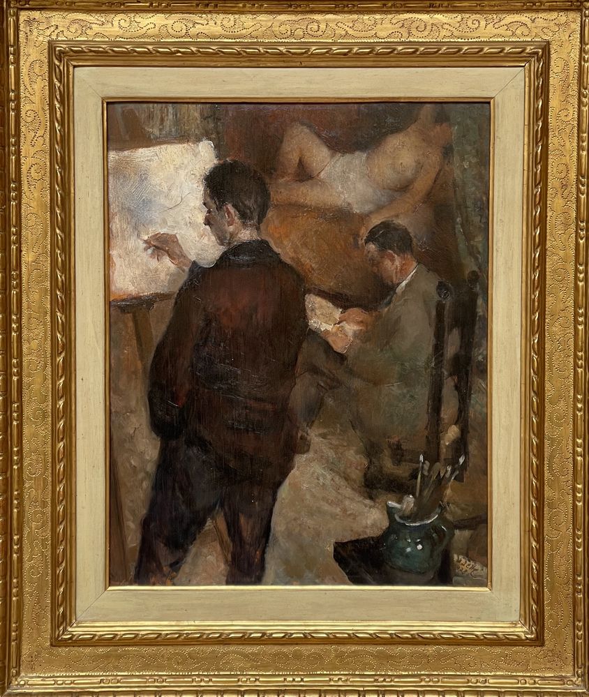 BRUNO SAETTI (Bologna 1902 - 1984) "Nello studio", 1928. Olio su tavola. Cm...