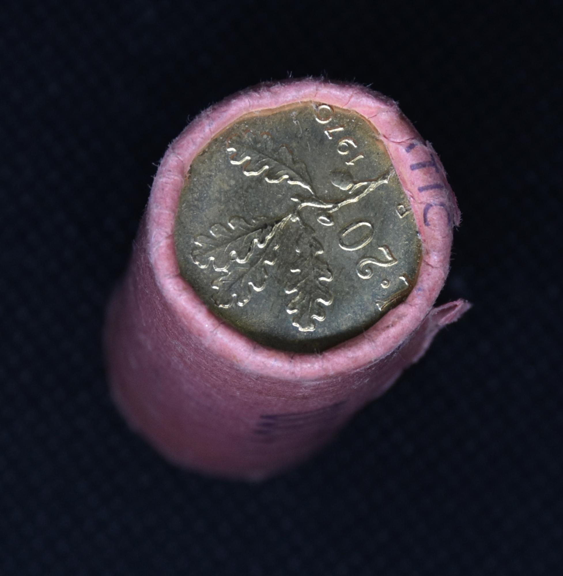 LOTTO DI 50 MONETE REPUBBLICA ITALIANA da 20 lire 1970 F.D.C. (Rotolino)