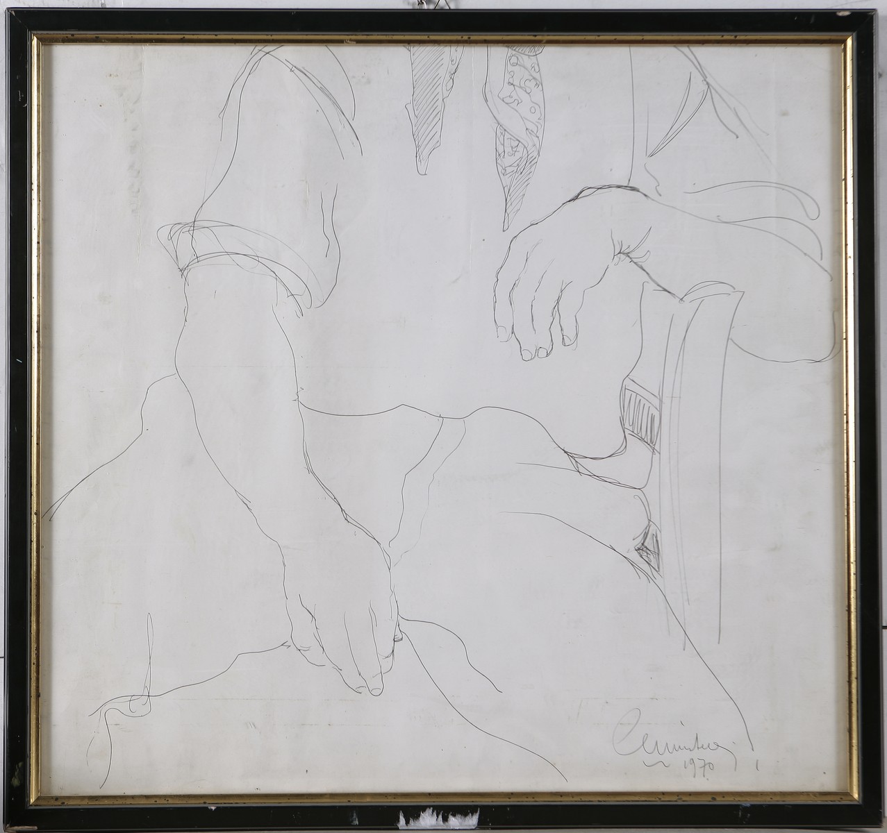MUSITELLI GIULIO VITO (1901 - 1990) Senza titolo. Biro su carta. Cm 59,00 x 55,00. Firma e anno in basso a destra. Piegature e macchie sulla carta. Cornice presente