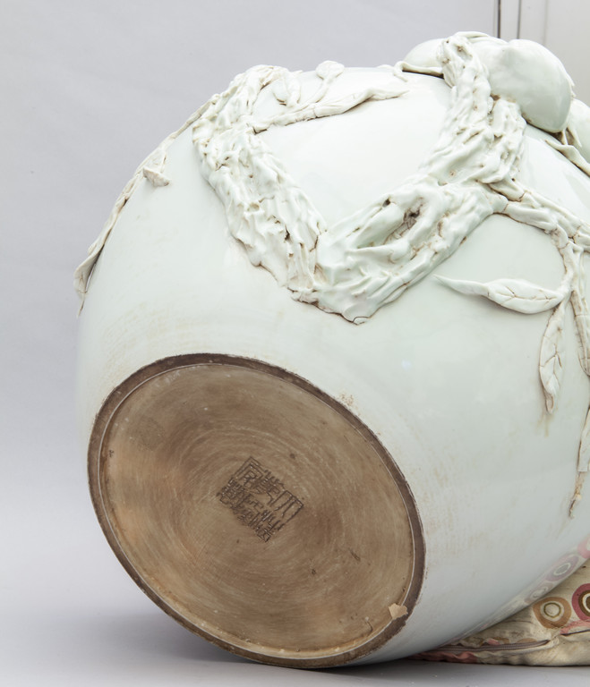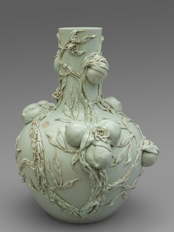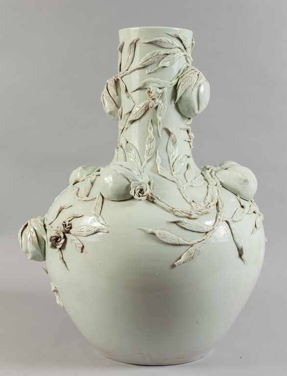 Grande vaso in porcellana bianca decorato con pesche in rilievo marcato sul fondo Cina sec.XX