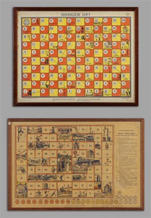 Tuf tuf spele (cm.60x41) e Hooger op! (cm.52x38) due giochi dell'oca fine sec.XVIII inizi sec.XIX