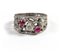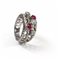 Anello in oro bianco firmato Sforza con incastonati due rubini per tot ct 0 25 circa e tre diamanti vecchio taglio per tot ct 0 30