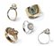 Lotto composta da 5 anelli in oro bianco e giallo con perle coltivate diamanti piccolo smeraldo e rubini.