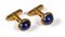 Gemelli in oro giallo a forma di bottone con montati due lapislazzuli taglio cabochon