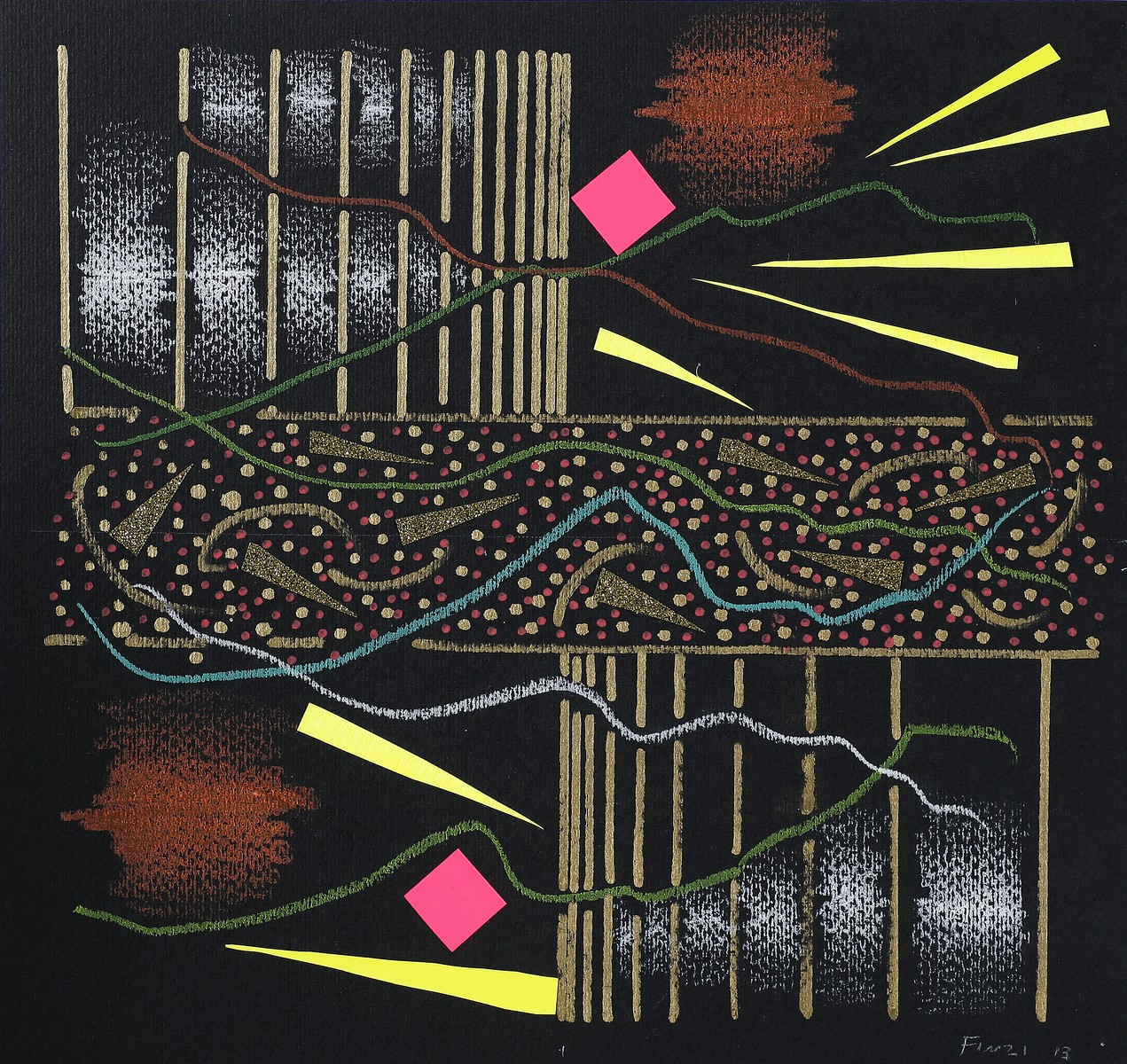 FINZI ENNIO (n. 1931) Senza titolo. 2013. Tecnica mista e collage su cartoncino. Cm 35,00 x 33,00. Firma e data in basso a destra. Autentica dell'artista su fotografia.