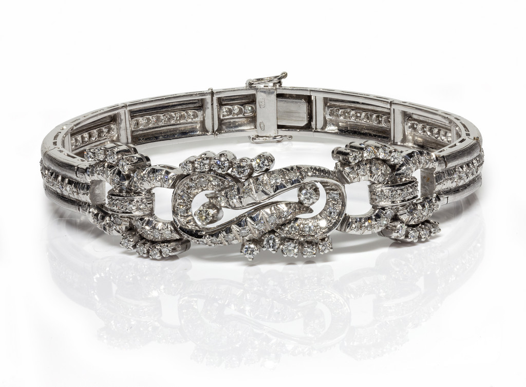 Bracciale in oro bianco e diamanti 8/8 e taglio a brillante di forma rotonda per stimati 1 10 ct complessivi.