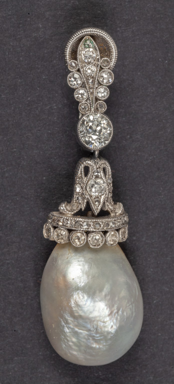 Importanti orecchini d'epoca del primo decennio del del XX secolo in platino e oro con pendenti due perle naturali di forma ovoidale