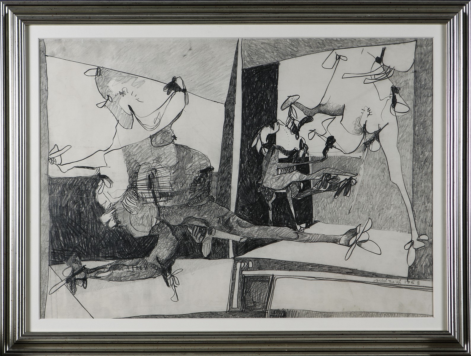 SCHIROLLI RENZO (1934 - 2000) Senza titolo. 1968. Tecnica mista su carta. Cm 49,00 x 68,00. Firma e data in basso a destra. Cornice presente