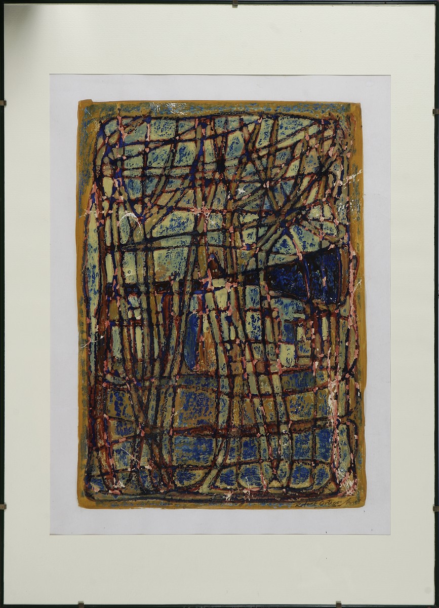 ORTEGA RAFAEL (n. 1932) Senza titolo. Tecnica mista su cartone. Cm 40,00 x 55,00. Firma in basso a destra. Cornice presente