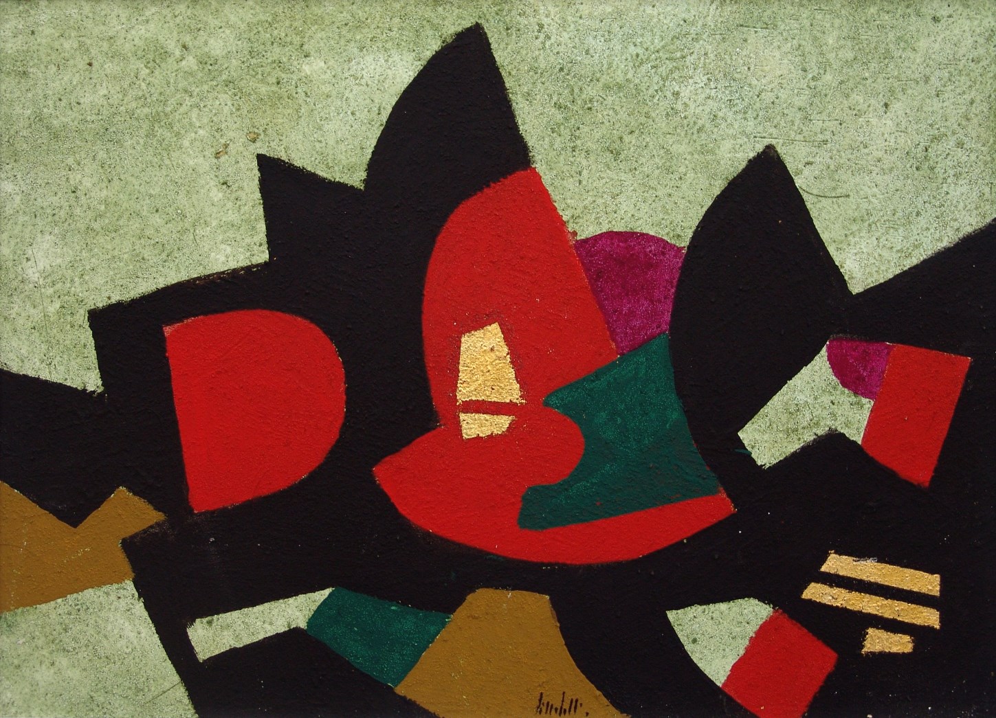 firma dell'artista in basso al centro e sul retro, opera con cornice