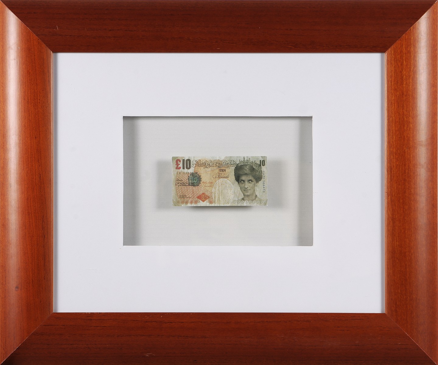 BANKSY (n. 1975) Senza titolo. Tecnica mista su carta. Cm 14,00 x 7,50. Banconota da 10 pounds. Certificato di provenienza a cura della Galleria Allegrini Arte, Brescia. Cornice presente