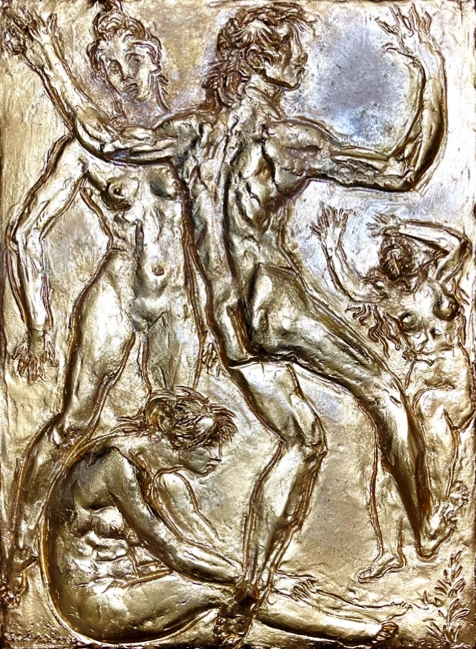 bassorilievo in bronzo dorato, 40x32,5 cm