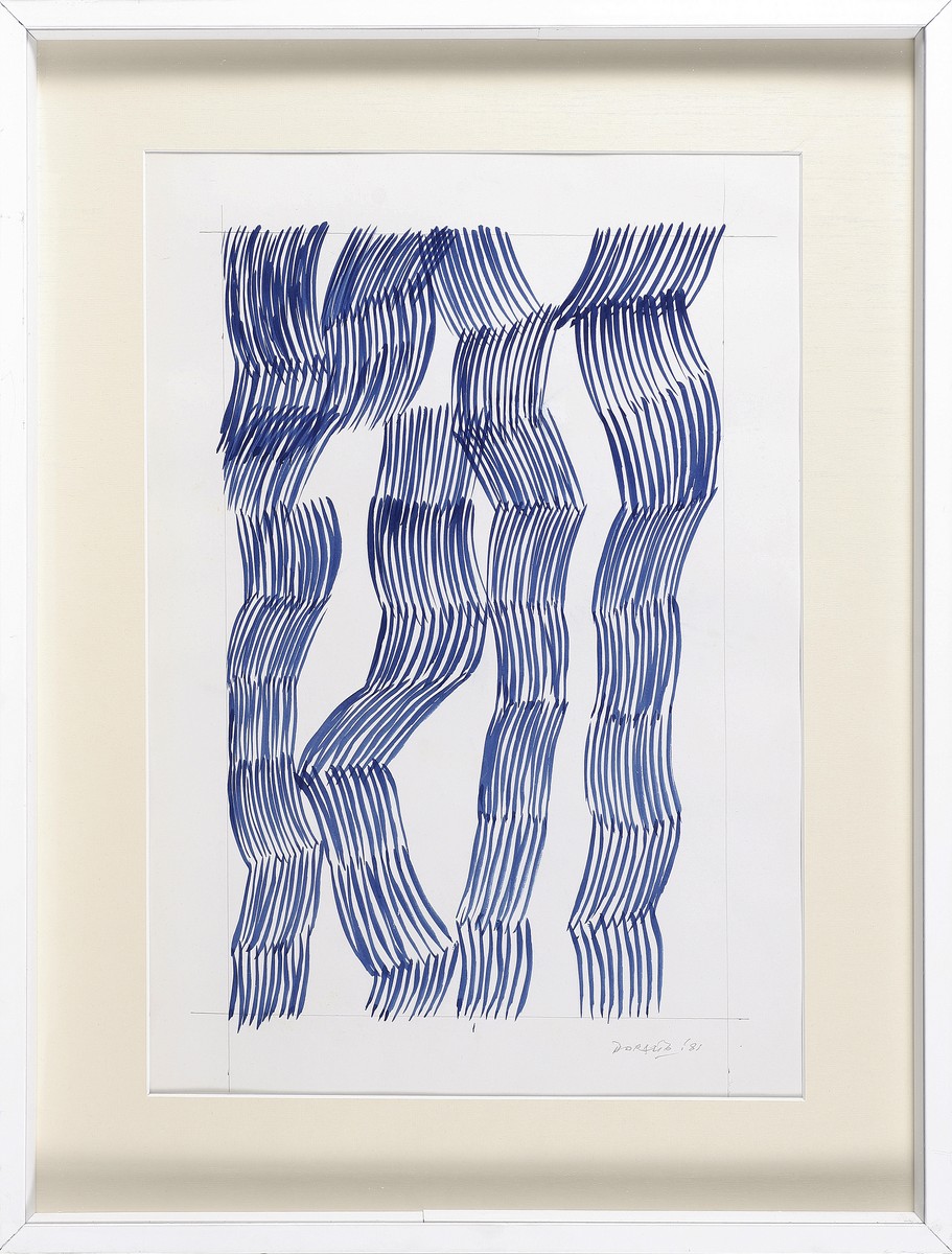 DORAZIO PIERO (1927 - 2005) Ruggine blu. 1981. Acquerello su carta. Cm 32,00 x 48,00. Firma e data in basso a matita. Al retro cartiglio descrittivo dell'opera a cura della Galleria Allegrini Arte Contemporanea, Brescia. Cornice presente