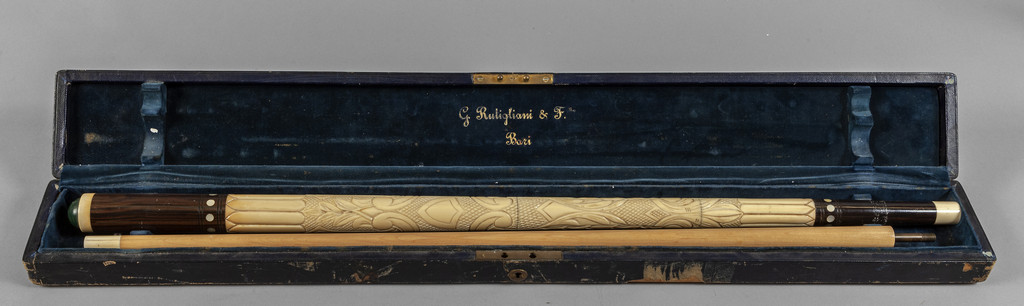 Stecca da biliardo in avorio nella sua custodia originale ditta G.Rutigliani Bari