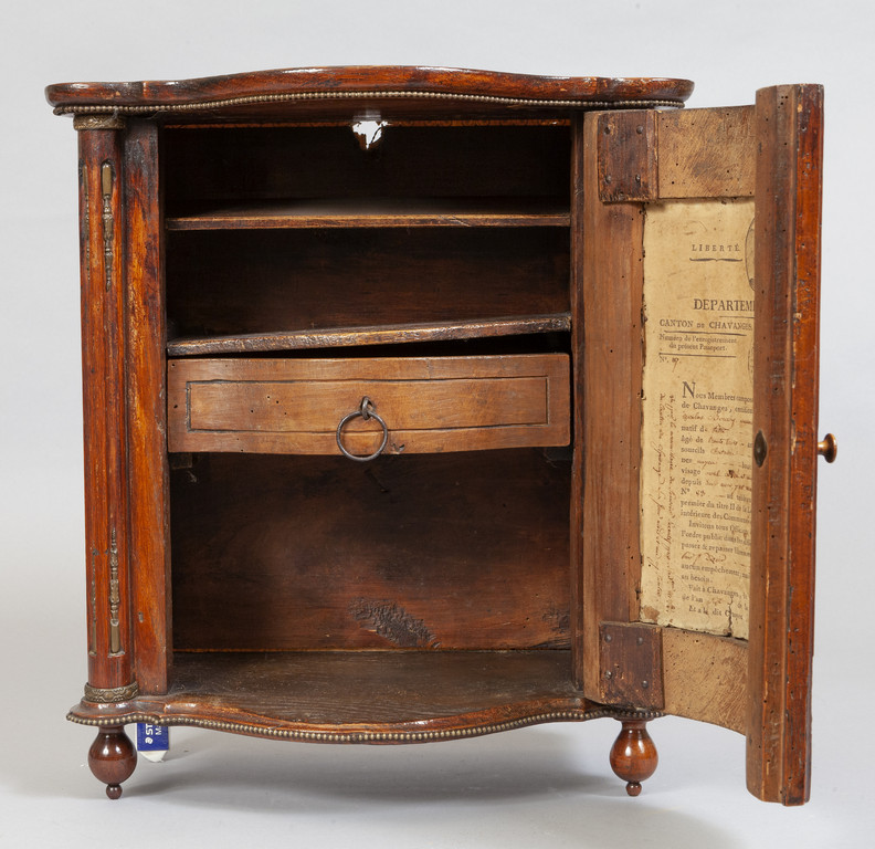 Mobiletto pensile in noce movimentato sul fronte colonnine laterali Francia I metà sec.XIX