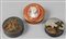 Tre scatole di forma rotonda una in tartaruga e argento decorata in vernis martin sec.XVIII una in tuja con coperchio con cammeo e una decorata con paesaggio