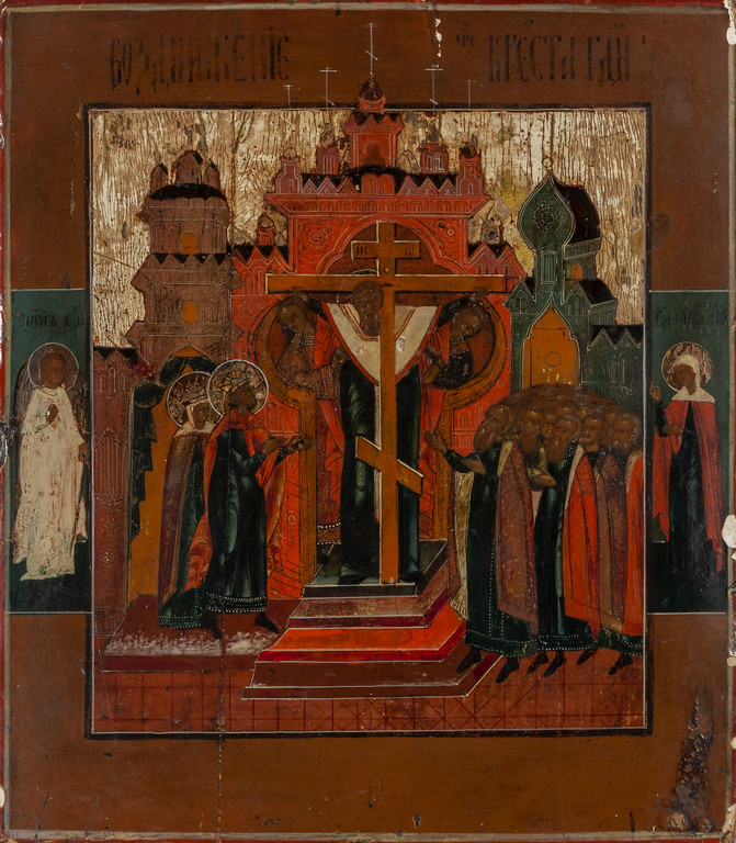 Precedente Lotto 0964 Successivo Aste Boetto - Via Mura dello Zerbino 10R, 16122 Genova Asta di Antiquariato Asta di Antiquariato giovedì 16 dicembre 2021 ore 10:30 (UTC +01:00) DIPINTO 'L'esaltazione della santa Croce' icona sec.XVII