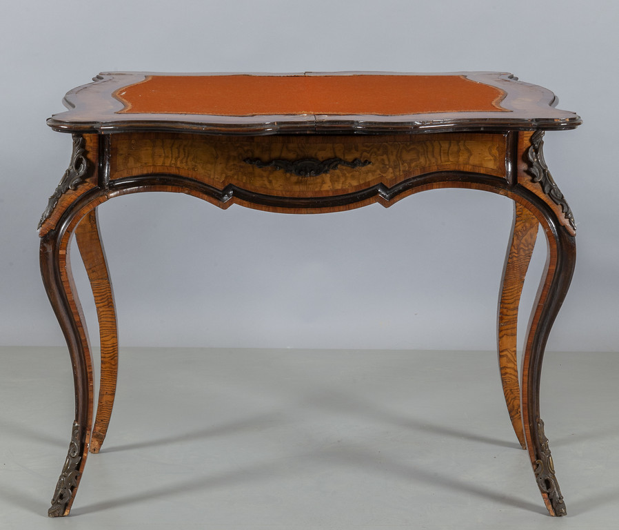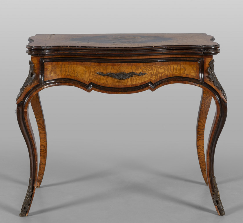 Tavolo da gioco umbertino riccamente intarsiato a motivi floreali piano apribile fine sec.XIX