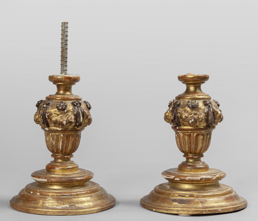 Coppia di basi in legno intagliato e dorato nel gusto rinascimentale sec. XVIII