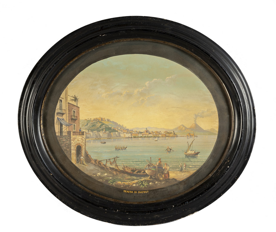 Precedente Lotto 1000 Successivo Aste Boetto - Via Mura dello Zerbino 10R, 16122 Genova Asta di Antiquariato Asta di Antiquariato giovedì 16 dicembre 2021 ore 10:30 (UTC +01:00) DIPINTO 'Veduta di Napoli' gouache di forma ovalecm. 40x39